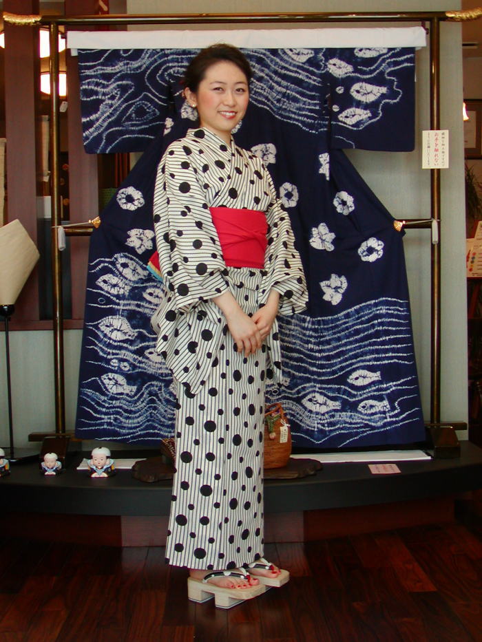 きものも下駄の鼻緒も 水玉模様で夏らしさ倍増!